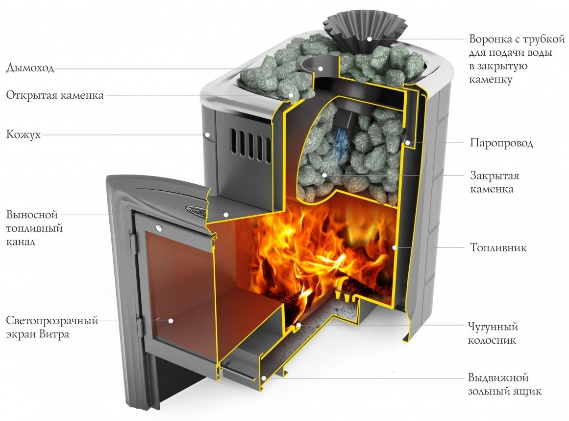 Компактная воронка с клапаном – дозатором позволяет подавать воду в самую горячую центральную часть закрытой каменки