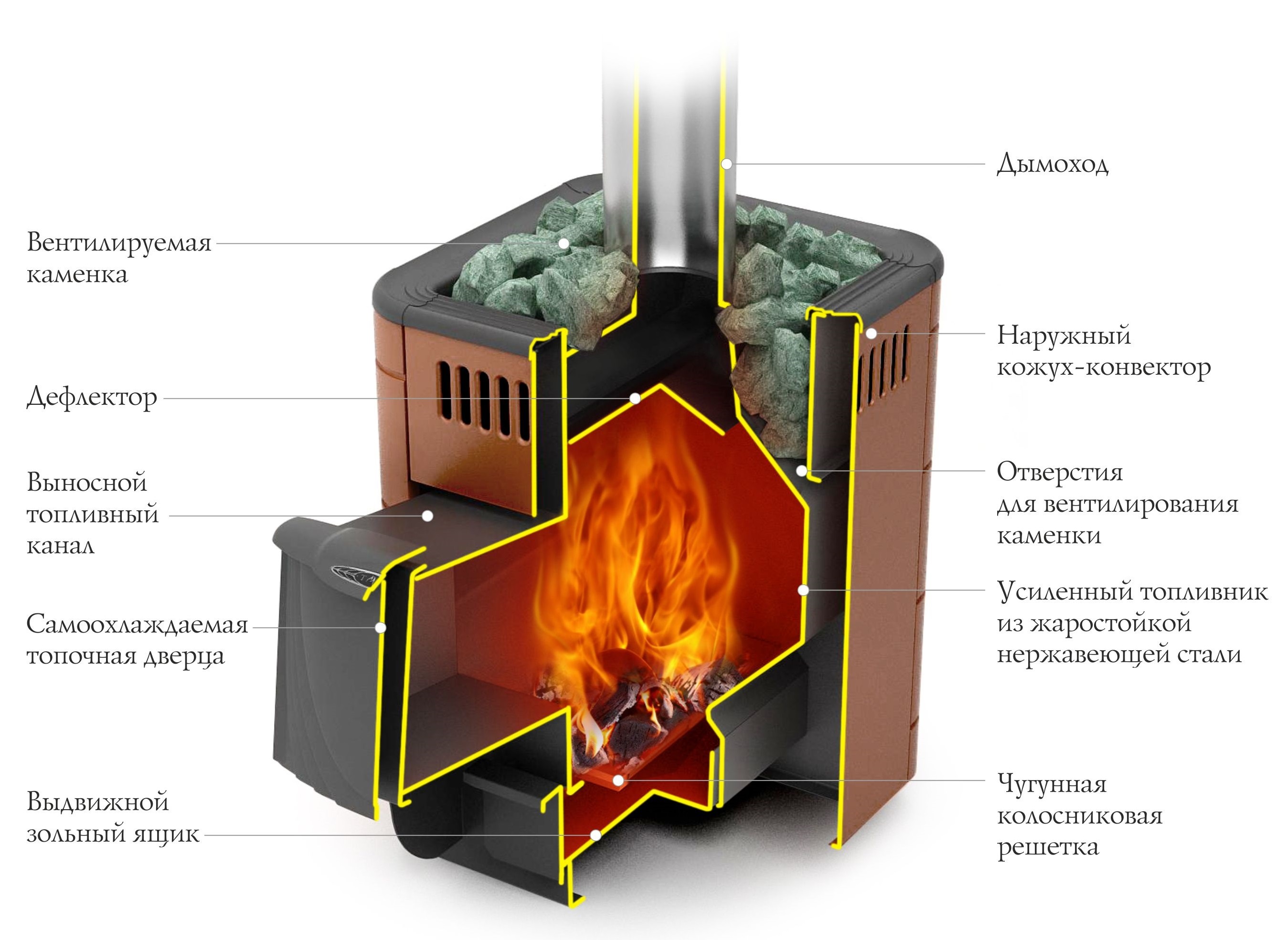 Отсутствие в конструкции печи подверженных засаживанию полостей упрощает ее эксплуатацию
