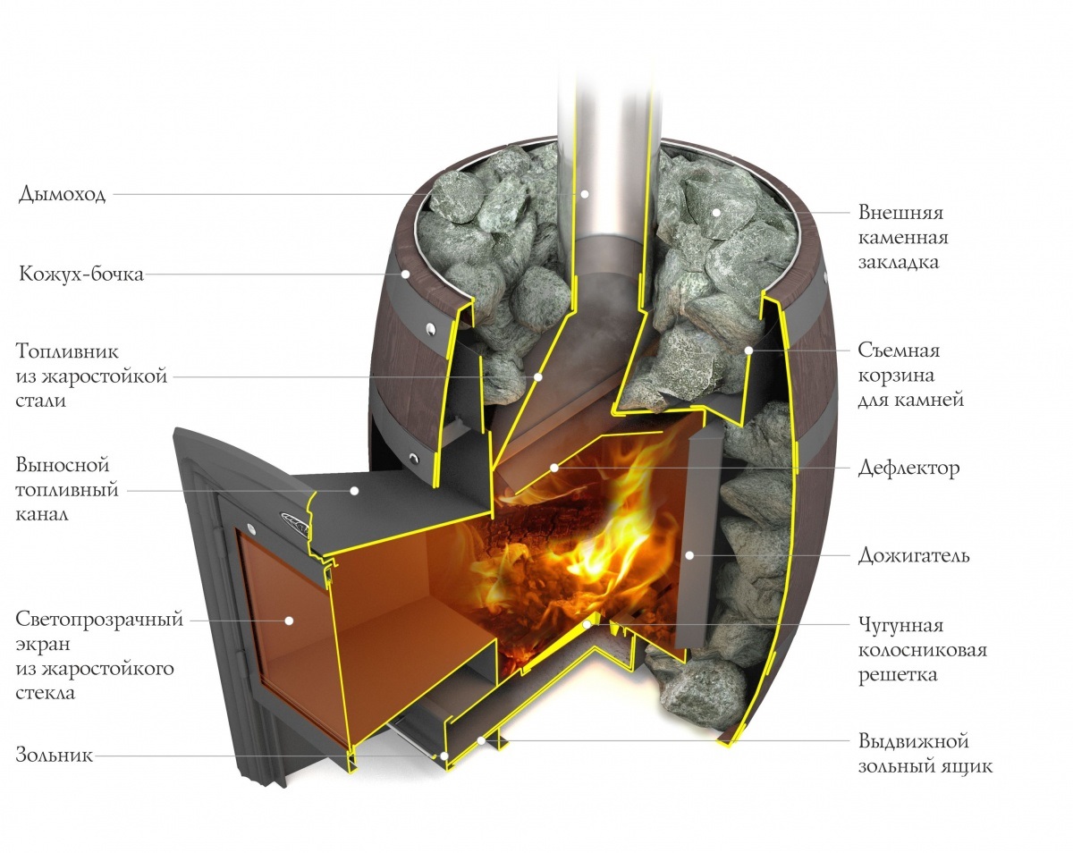 Изменяя массу и насыпную плотность каменной закладки, можно изменять конвекционные, излучающие и теплоаккумулирующие свойства печи