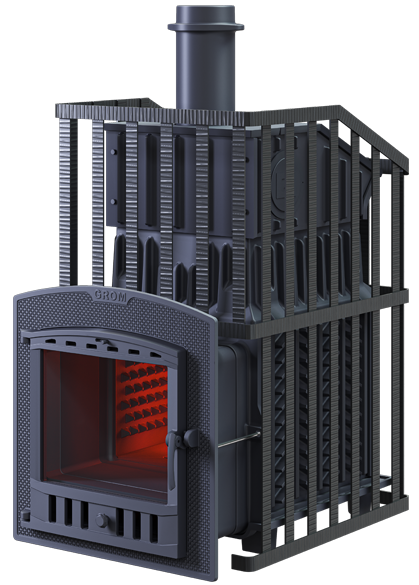 Печи линейки «GROM» имеют в комплекте чугунный короб для установки на каменку и чугунную стартовую трубу длиной 500мм. Увеличенная масса,толщина боковых стенок 14мм повышают надежность и теплоаккумулирующую способность,а для быстрого нагрева парной боковые стенки оборудованы конвекционными ребрами не только снаружи,но и на внутренней поверхности.