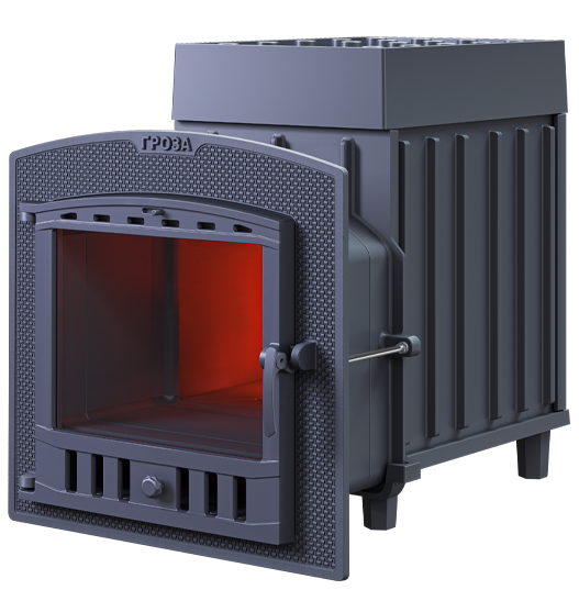 Чугунные банные печи ТМ «Гроза» — это современные печи, рассчитанные на малые и средние размеры парных. Печь имеет прочную сборную конструкцию, без резьбовых и сварных соединений, детали выполнены из легированного чугуна. Топка печей «Гроза» состоит из двух камер, разделенных пламегасителем. Радиаторные выступы каменки, направленные вглубь топки, увеличивают площадь контакта огня с каменкой и эффективность теплосъема. Для увеличения площади поверхности нагрева камней каменка снаружи оборудована чугунными шипами, направленными вверх. Между шипами укладываются банные камни или дополнительные чугунные заклады, такие как ядра и чугунные шишки. Сами чугунные шипы также являются частью заряда для лучшего испарения воды
