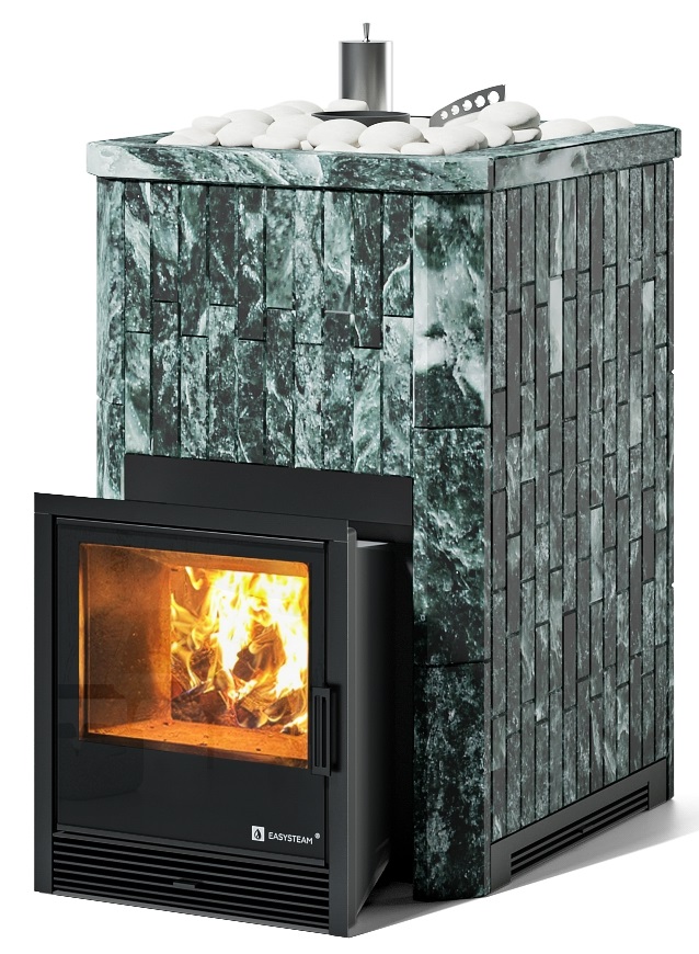 Южная - банная печь с уникальным узлом дожига дымовых газов , который обеспечивает более полное сгорание дров и и, как следствие, снижение расхода дров до 30%. Печь оснащена съемной закрытой каменкой, топка печи футерована шамотными плитами. В стандартную комплектацию печи входит индивидуально разработанный кожух из натурального камня толщиной 40 мм с регулируемой конвекцией.