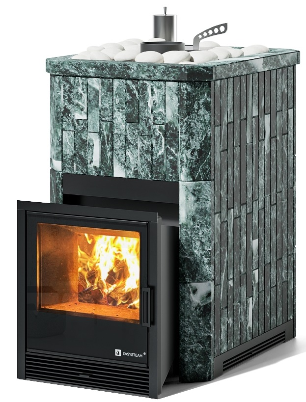 Южная - банная печь с уникальным узлом дожига дымовых газов , который обеспечивает более полное сгорание дров и и, как следствие, снижение расхода дров до 30%. Печь оснащена съемной закрытой каменкой, топка печи футерована шамотными плитами. В стандартную комплектацию печи входит индивидуально разработанный кожух из натурального камня толщиной 40 мм с регулируемой конвекцией.