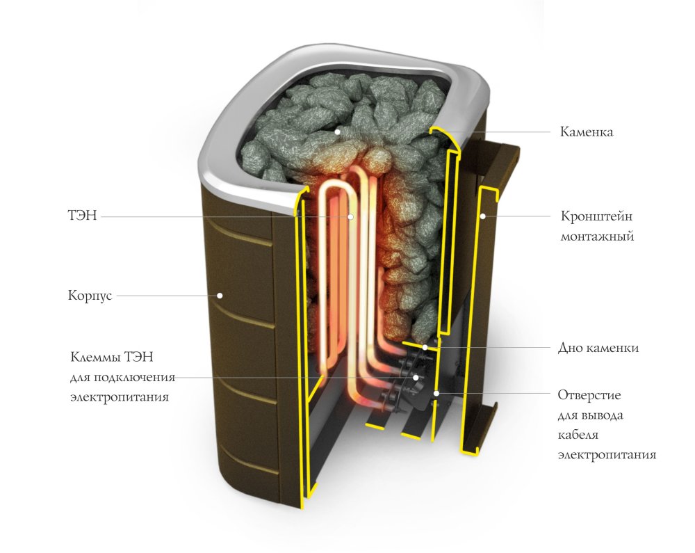 Быстро прогревает парильное помещение