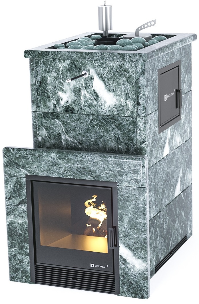 Геленджик М2- банная печь предназначенная для использования в просторной бане с объемом парной не более 35 м3. Закрытая каменка и встроенный парогенератор гарантирует большое количество легкого пара, огонь, пылающий за пано- рамным стеклом подарит атмосферу тепла и уюта в вашей бане, Боковой вход в каменку (М2) позволяет провести более быструю ревизию камней, подавать воду на камни, не используя парогенератор.
