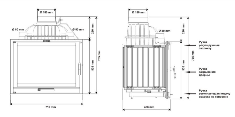 дверца оборудована жаростойким плоским стеклом – предоставляет панорамный обзор и благодаря функции самоочистки позволяет любоваться игрой пламени без запотевания и засаживания;