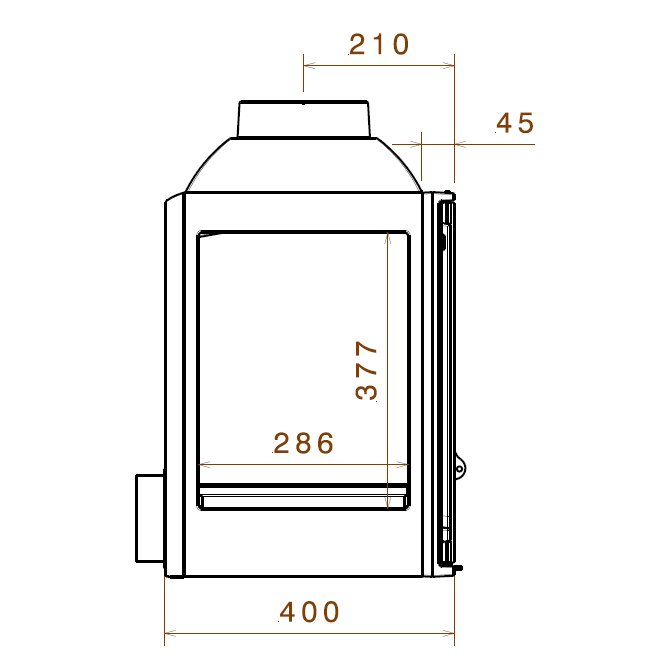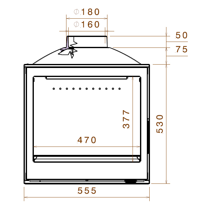 В топке реализован первичный и вторичный дожиг дымовых газов. Первичный в виде подачи воздуха на дрова через низ топки.Через регулятор вторичного дожига дымовых газов воздух подается в верхнюю часть топочной камеры.Там он воспламеняется вместе с поднимающимся древесным газом.Вы смотрите на красивые всполохи пламени, в которых сгорают частицы и газ.Сгорая, они преобразуются в экологически безопасный СО2.