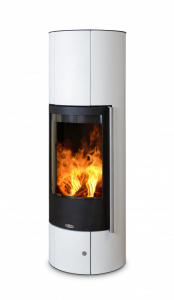 Печь Oregon (Орегон), от производителя АВХ,за счет своей цилиндрической формы можно установить как в центре комнаты,так и в углу или около стены.Металлический корпус,окрашенный в жемчужно-белый цвет,значительно уменьшает вес печи,по сравнению с кафельной облицовкой,в результате получаем общий вес всего 100кг и не высокую стоимость.Топка выполнена из высоколегированной стали и футерована вермикулитом,имеет функцию очистки стекла и вторичных дожег дымовых газов.Большая дверца,с панорамным стеклом, позволяет увеличить угол обзора пламени,а металлическая часть двери закрывает зольный отсек с выдвижным ящиком.Внизу печи есть дверца с магнитным замком, которая скрывает две регулировки подачи воздуха первичного и вторичного.