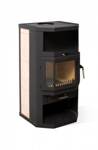 Классическая пристенная печь с панорамным обзором. Идеально подходит для обогрева помещения площадью 45-90 м2. Призматическая дверка из трех стекол высотой 330 мм. В отделке боковых поверхностей используется керамическая плитка. Размер поленьев 30-50 см. Подсоединение к дымоходу сверху или сзади.