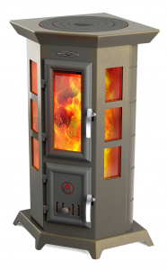 Высокая дверца топливника позволяет максимально наполнить печь дровами для длительного непрерывного горения