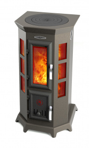Высокая дверца топливника позволяет максимально наполнить печь дровами для длительного непрерывного горения