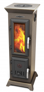 Высокая дверца топливника позволяет максимально наполнить печь дровами для длительного непрерывного горения