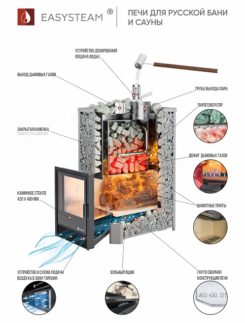 Ялта 25 К в камне - особо прочная газо-дровяная печь постоянного действия, предназначенная для создания в парильном отделении общественной или коммерческой бани, условий русской парной и сауны, с присущими им температурно-влажностными режимами. Комбинированный кожух из природного камня и нержавеющей стали подарит атмосферу тепла и уюта в парной, украшая собой банный комплекс.