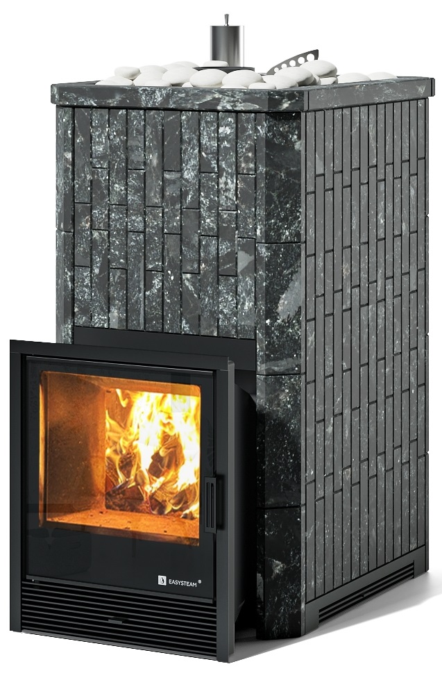 Южная - банная печь с уникальным узлом дожига дымовых газов , который обеспечивает более полное сгорание дров и и, как следствие, снижение расхода дров до 30%. Печь оснащена съемной закрытой каменкой, топка печи футерована шамотными плитами. В стандартную комплектацию печи входит индивидуально разработанный кожух из натурального камня толщиной 40 мм с регулируемой конвекцией.