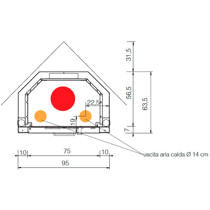 Закрытая топка со стальным корпусом и широким обзором огня. Очаг прямоугольной формы с чугунной футеровкой. Плавный подъем дверцы - гильотина. Топка может устанавливаться как с пристенной облицовкой, так и в угловой версии камина.