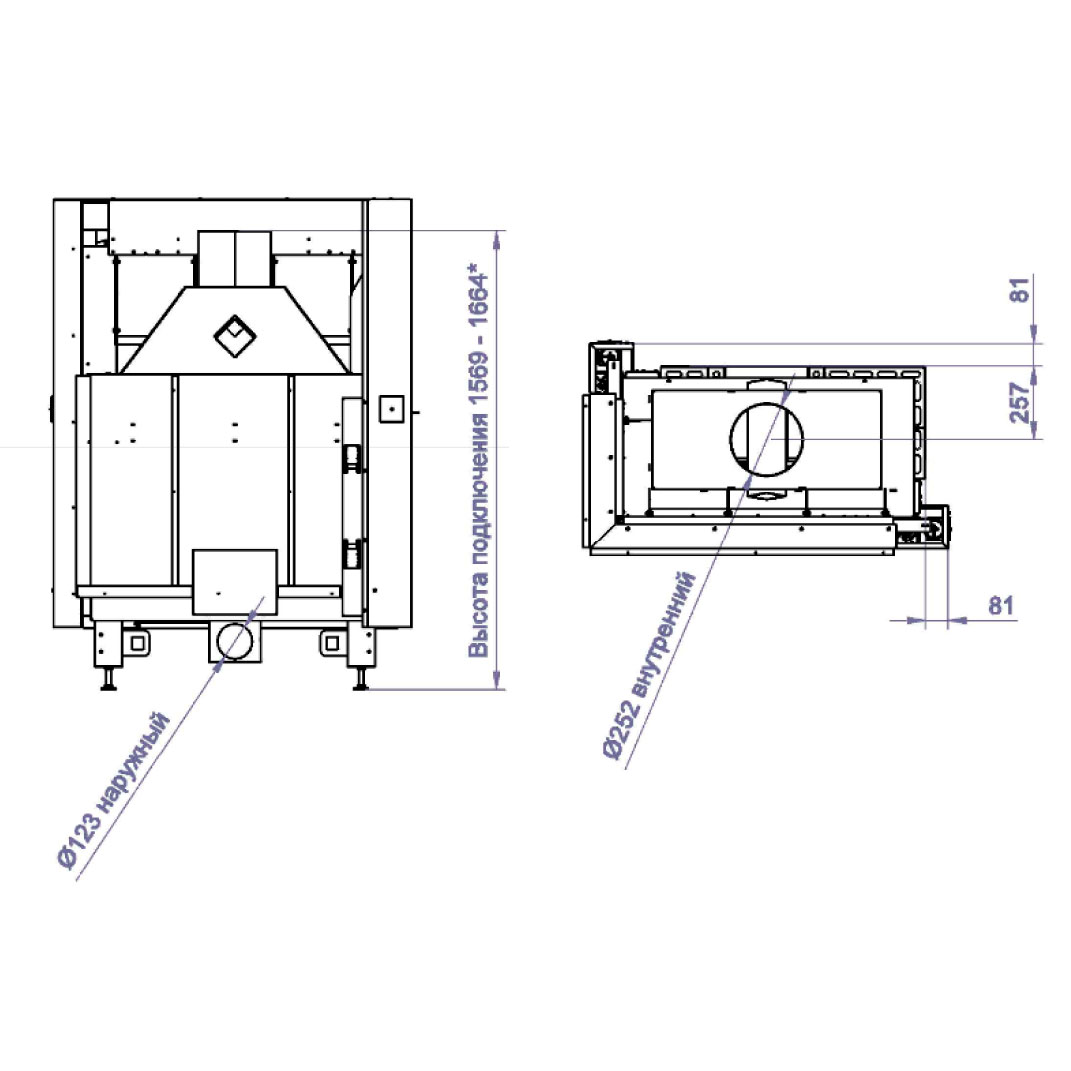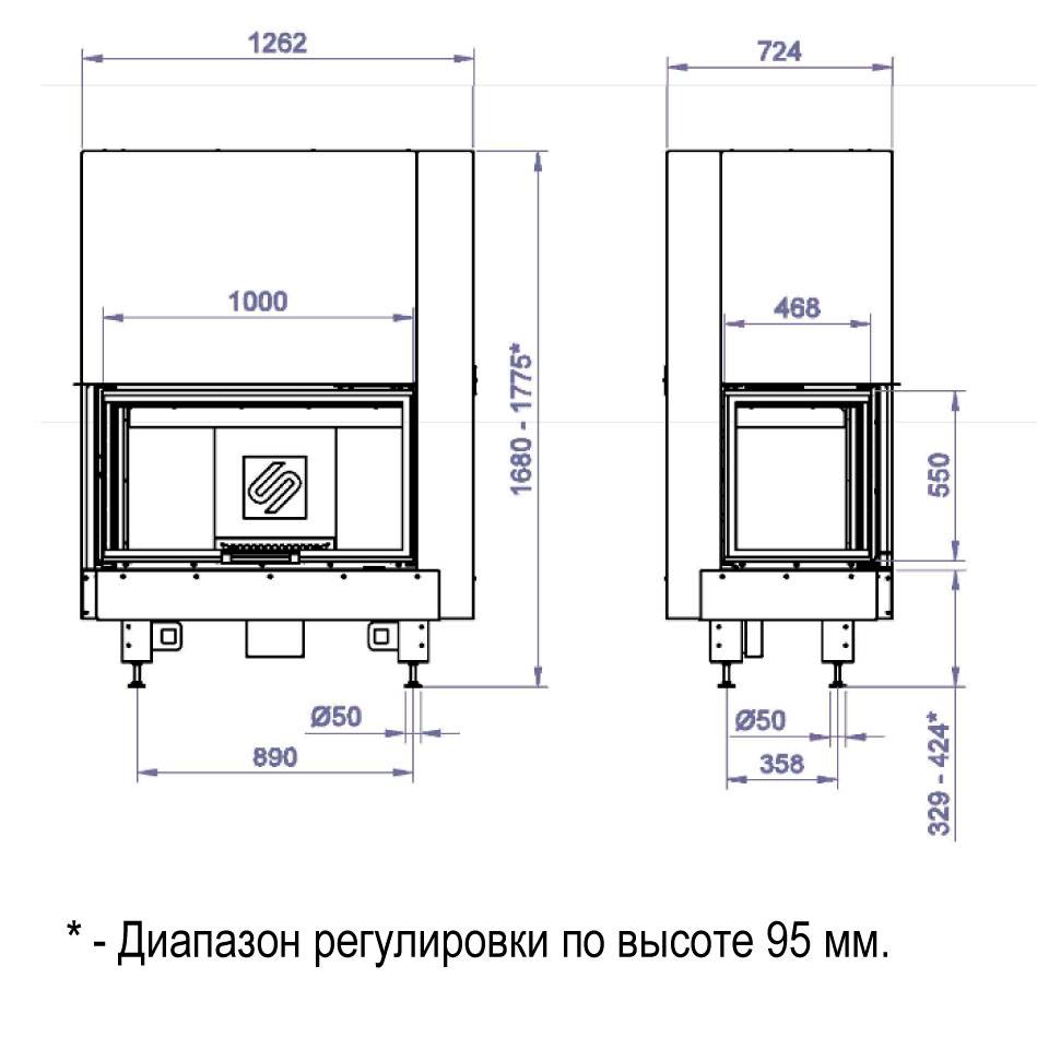 Дровяная угловая каминная топка. Угол слева. Футеровка - элементы белого цвета. Гарантия - 7 лет!