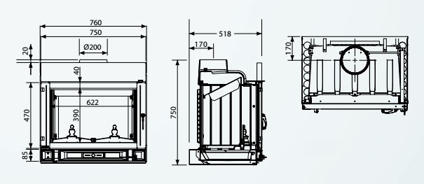 Чугунные детали снимаются изнутри топки: в случае замены нет необходимости демонтировать камин!