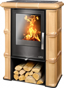 Современная кафельная печь с дровником ABX Sicilia прекрасно впишется в классический интерьер дома. Оборудование подходит для установки в дачном или загородном доме и может быть единственным источником тепла за счёт системы длительного горения и хорошей проводимости тепла у материалов топки и облицовки.